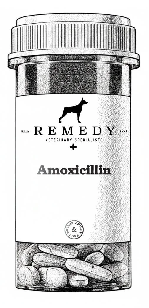 Amoxicillin is an antibiotic commonly used to treat bacterial infections in dogs and cats. Related medications, including Augmentin and Clavamox, may be prescribed for infections affecting the skin, respiratory tract, or urinary tract.