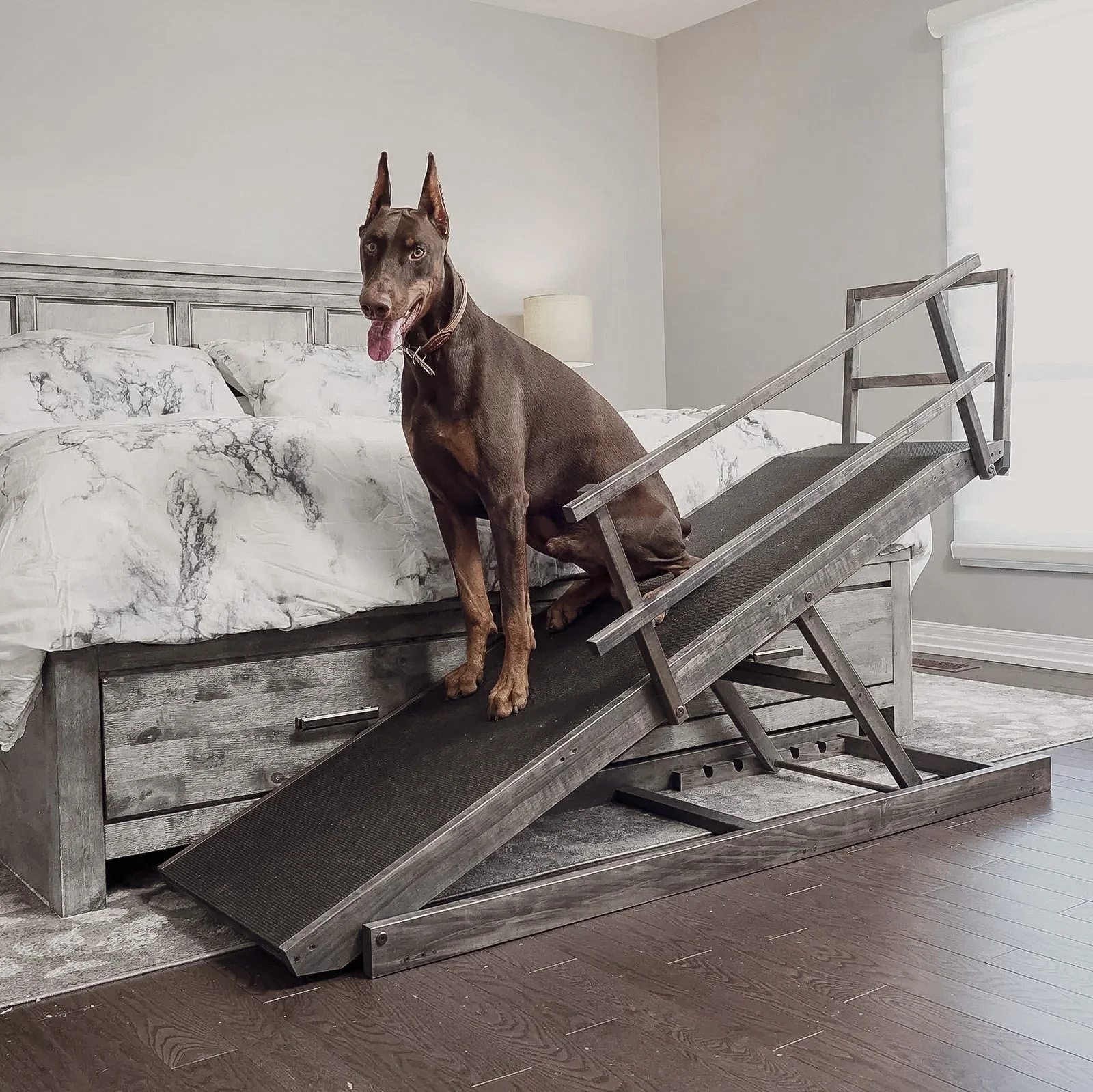 Safety & Confidence: Pets with limited mobility may rush up stairs, increasing the risk of slips or stumbles. A ramp’s gentle incline can help them move at their own pace.