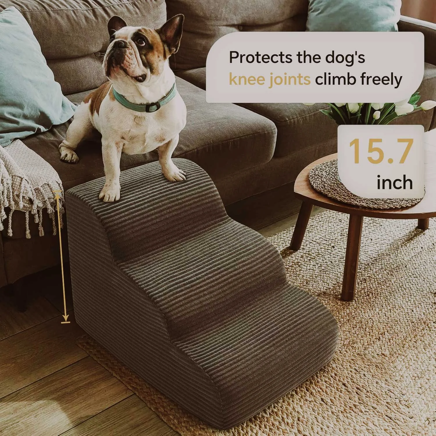 Size & Setup: Measure the space next to furniture or the car. Pets often do better with ramps or steps placed parallel to the furniture so they have a visual “railing.”